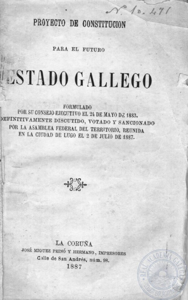 Modelo de descentralización do rexionalismo federal recollido na Constitución para el futuro Estado gallego (1887) Fonte: Galiciana (Real Academia Galega)
